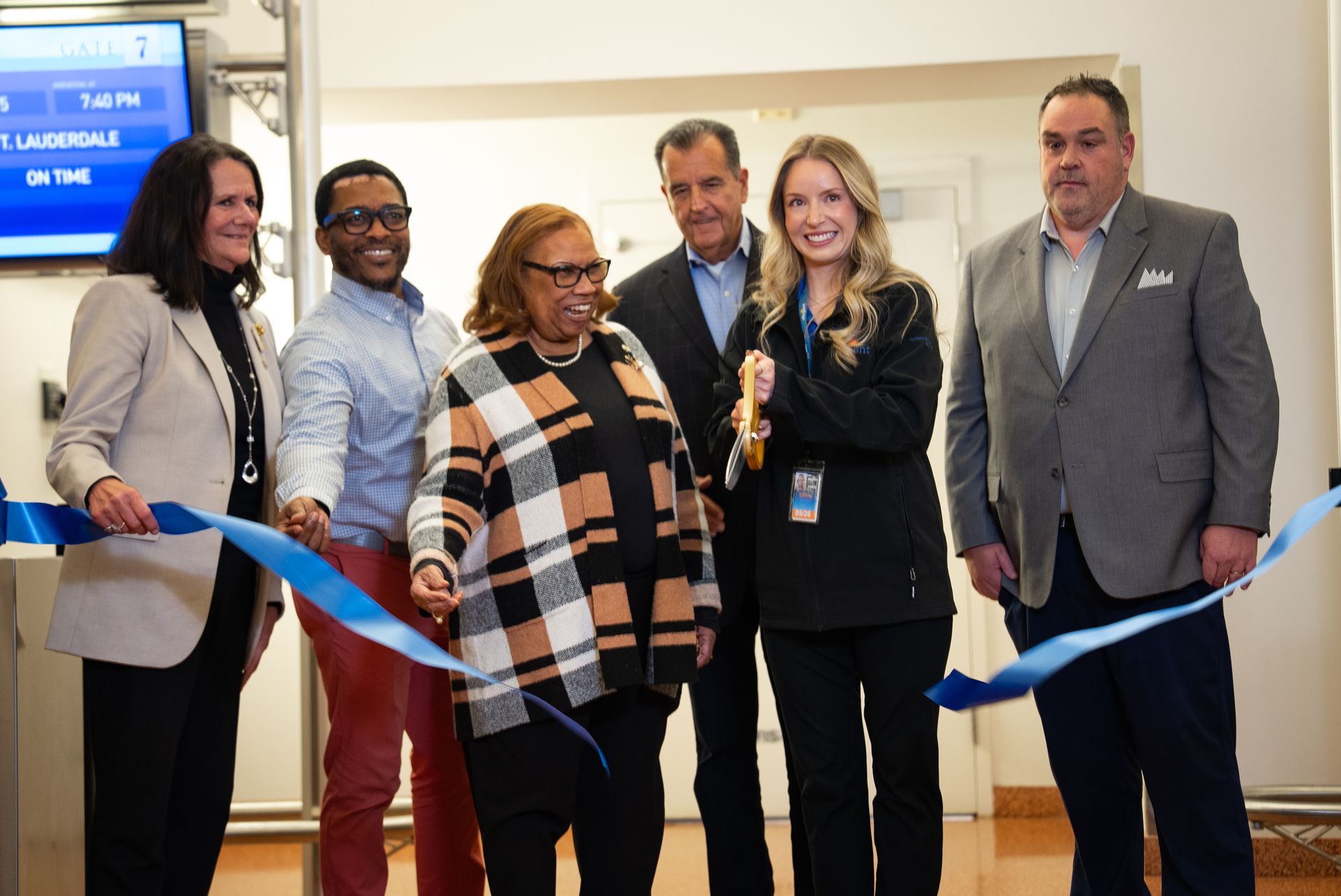 The celebration included a ceremonial ribbon cutting, cake-cutting, special goodie bags from Visit Atlantic City, and remarks from airport and community partners highlighting the continued growth of service at ACY and the importance of expanded travel options for the region.